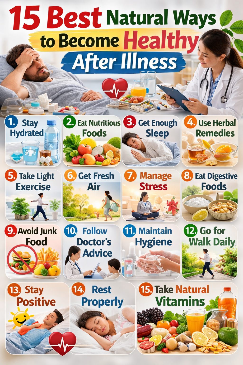 In this article, we will explore 15 powerful natural ways to become healthy after illness, along with practical tips that can help your body regain strength naturally.